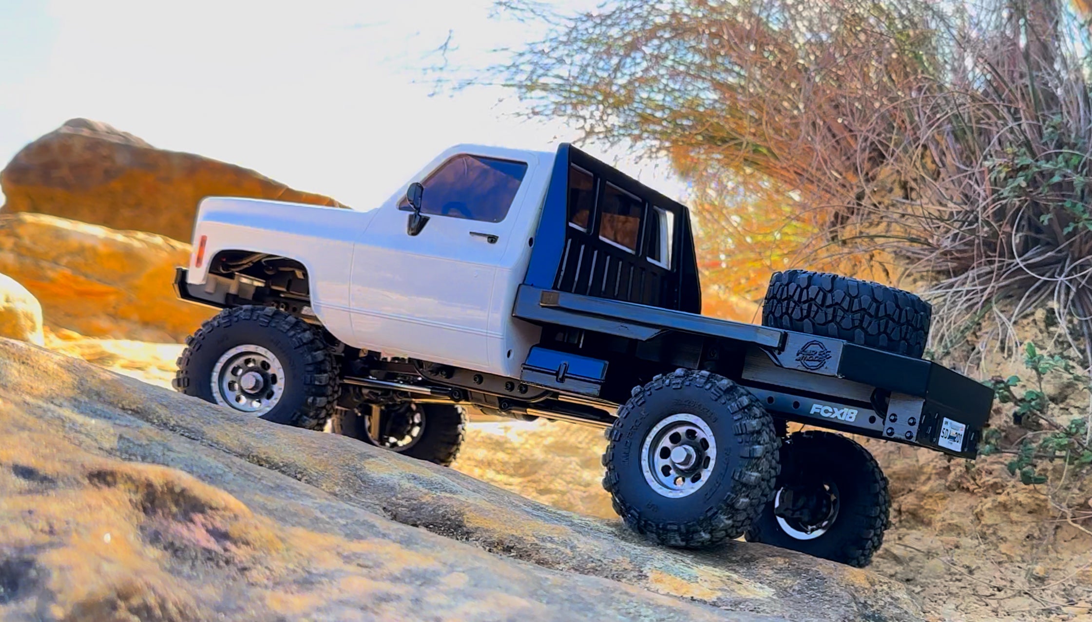 The Fcx24 K5 Way Cool MCCue Mod rig is an awesome little rig, the paint job to the extra add on parts, I got the option with all the mods in it and I'm loving this rig. I just can't get over the colour combo and the speckle it has when it's out in the sun. And the performance is awesome as well with the fcx24 platform.