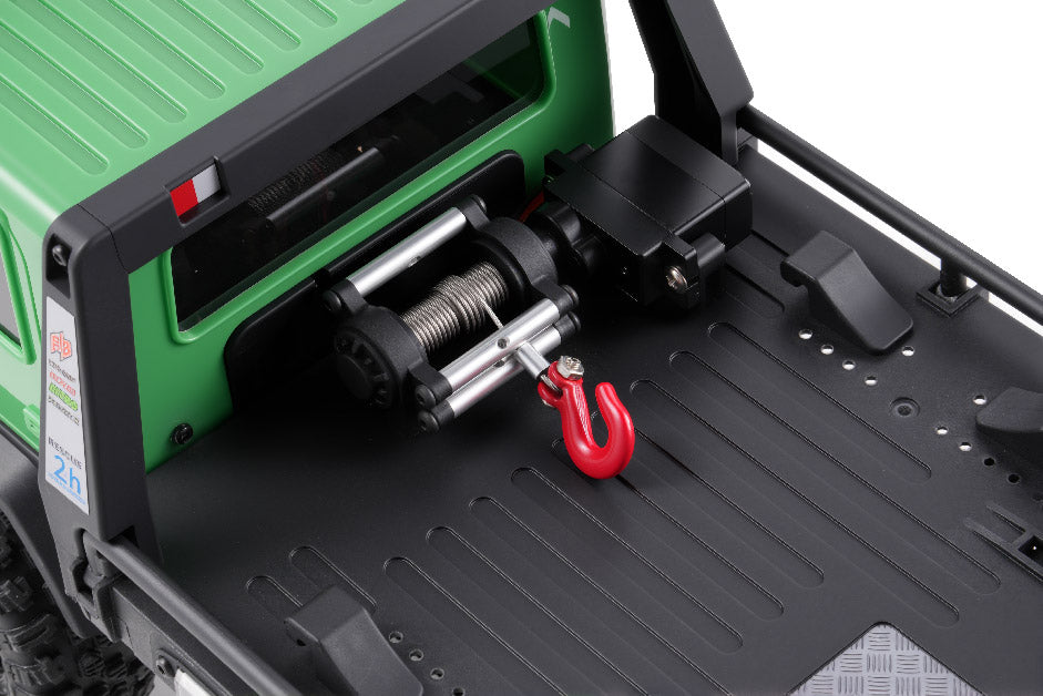 The complete Arktos package continues to lend itself well to the curiosity of the consumers. Curiosity in the remote two-speed transmission, remote operated LED lights with 5 modes, a remote working rear recovery winch, deployable and storable access ramps, a versatile flat bed with pivoting bed side rails for larger loads and adjustable wheel chocks, a hard body that consist of fine crisp detail throughout including retractable side mirrors, windshield wipers, sun visor, side marker lights, blinkers, low/high beams, LED offroad light bar, bull bar and tinted windows.