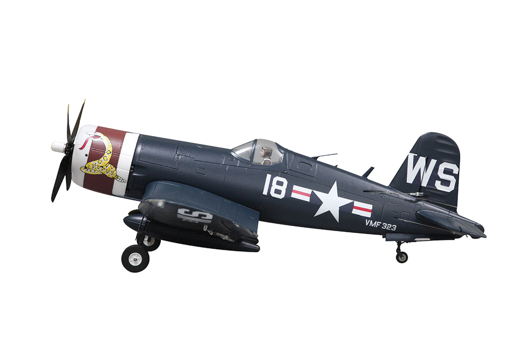 We are proud to announce a faithful recreation of the F4U-4 in 1100mm wingspan form- complete with a realistic 4-bladed propeller, removable auxiliary fuel tanks, tail-hook, functional flaps, retractable landing gear and LED light kit. Power comes from a 3536-850 KV motor with a 40A ESC, giving swift ample power when needed.