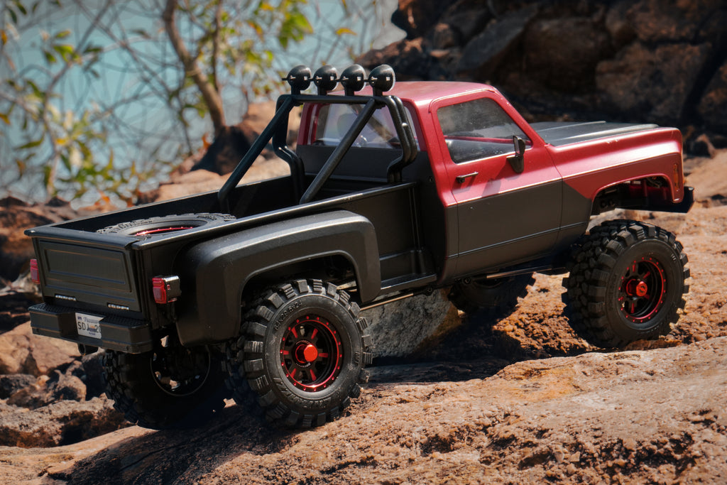 Designed for collectors and hardcore car enthusiasts, this highly detailed micro crawler brings classic square-body style to the trail. A rare stepside build in a world full of fleetsides.