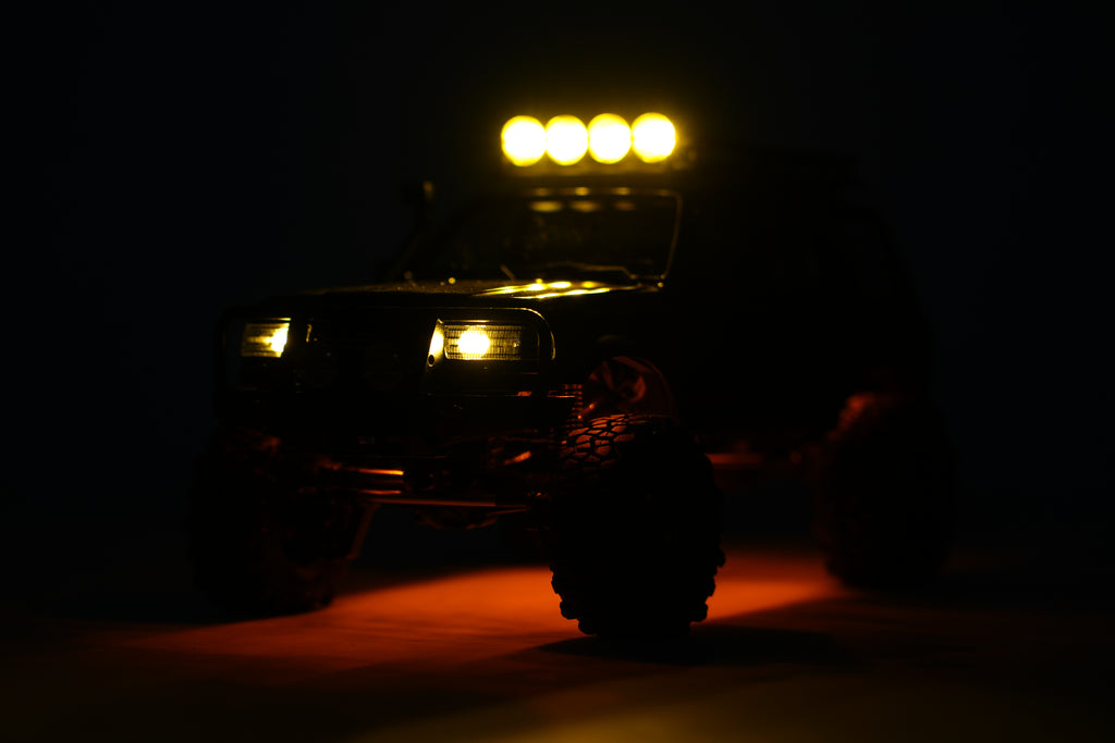 Based on the legendary LC80 Land Cruiser platform, this mini crawler is ready to travel the trails with a bright glow, chilling detail, and a power system that’s pure dark magic. Whether you’re exploring rocky hills or carving up moonlit trails, the Nightcrawler delivers the perfect mix of fun and fine-tuned performance.