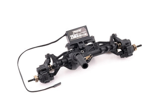 Authorized by Toyota, the FCX10 PRO LC80 features a detailed exterior, interior, and lighting system. The car body is crafted from durable PC material, with a premium two-color spray paint process that includes silver powder for a sparkling finish. | The LC80 PRO's outrunner power system includes a 50A independent brushless ESC and a 3541 outer rotor brushless motor. Compared to brushed combos, it provides an exceptionally delicate smooth and linear control experience. | The separate ESC and receiver setup provides greater flexibility and easier maintenance compared to combo units, allowing for lower cost on upgrades or repairs. | |||
